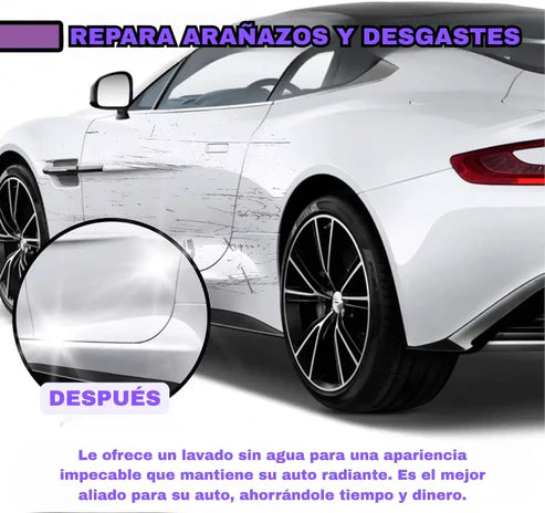 Sin lijar, sin pulir, sin complicaciones, Las partículas nano-rellenadoras restauran la superficie con solo rociar. Ideal para arañazos superficiales, rozaduras y marcas de remolino. ✅